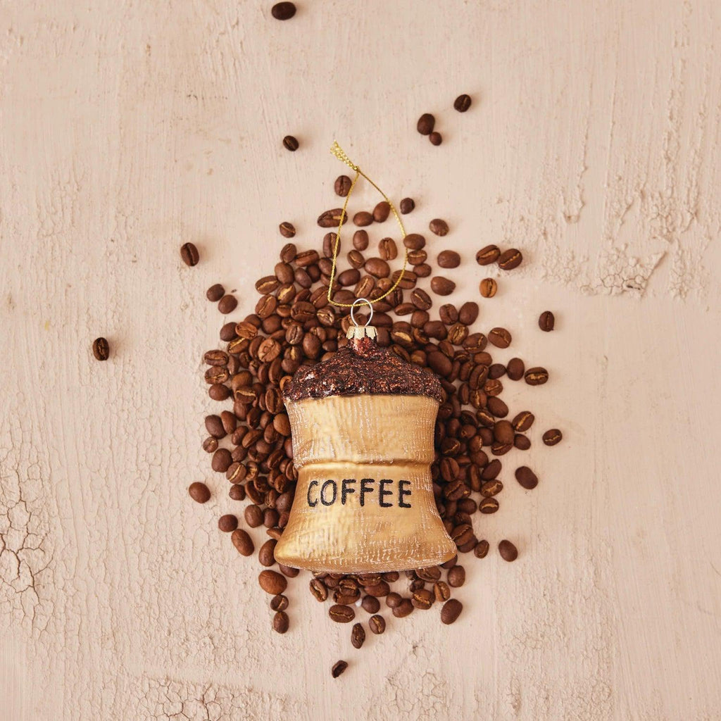 CREATIVE - Glass Coffee Bean Sack Ornament with Glitter, Gold Finish & Brown