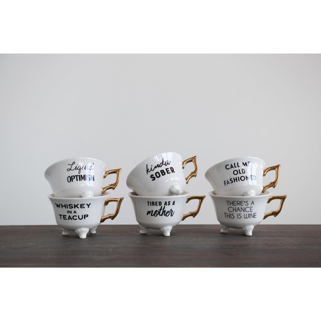 CREATIVE - Stoneware Footed Teacup with Saying, 6 Styles