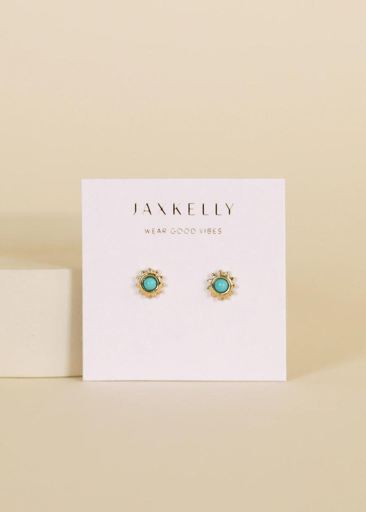 JAXKELLY - Sun Stud - Turquoise - Gold Earrings