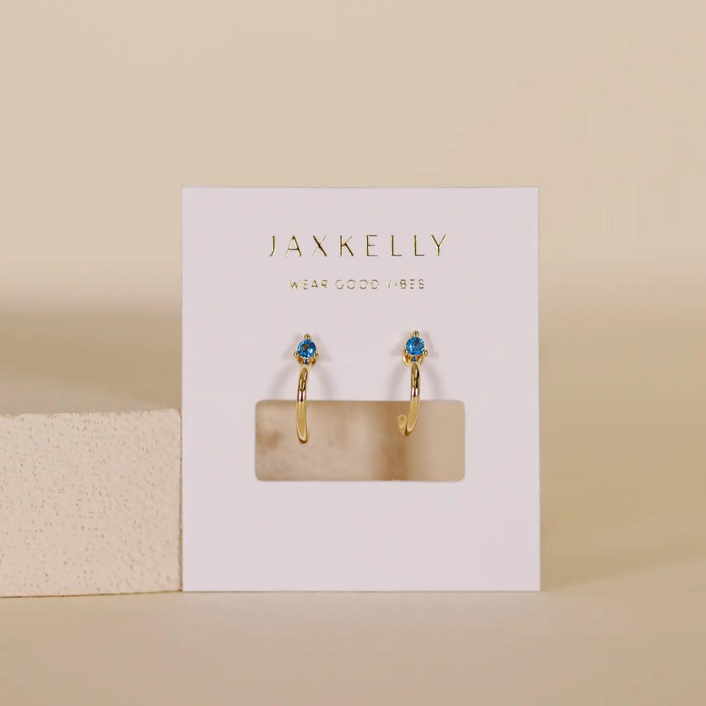 JAXKELLY - Open Mini Hoop Earrings - 18k Gold - Blue Sapphire