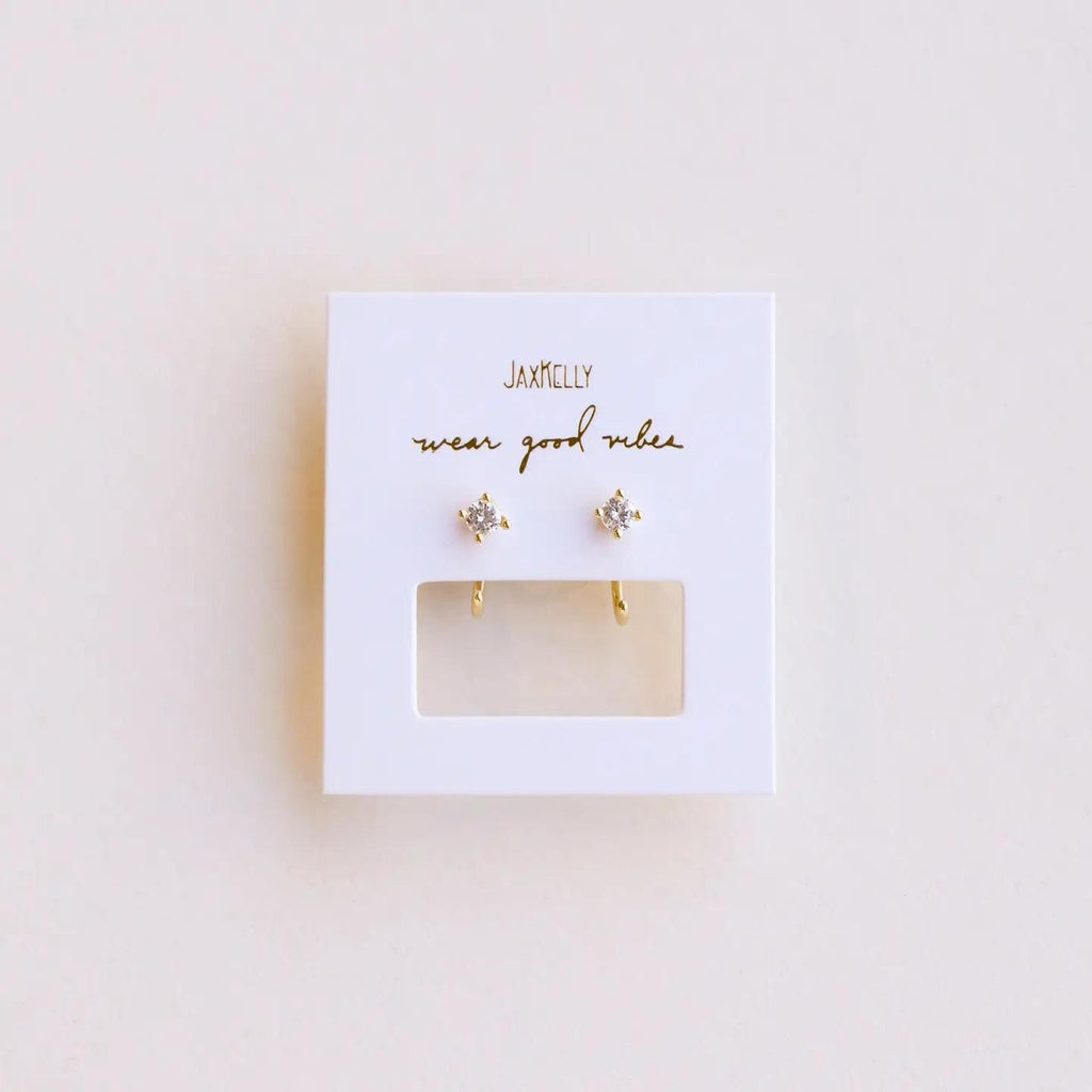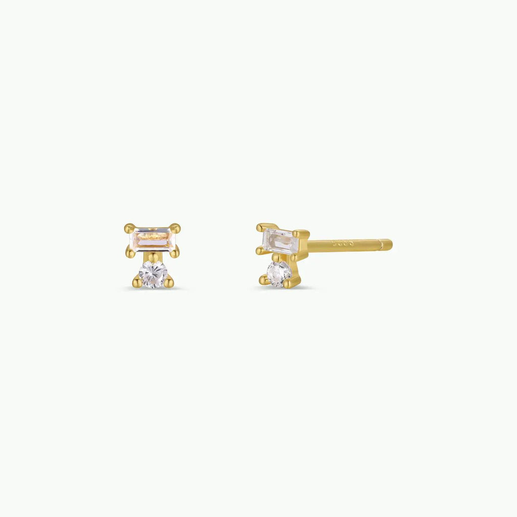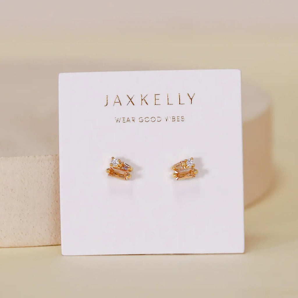 JAXKELLY - Double Stud Stack - White CZ - Gold Earrings