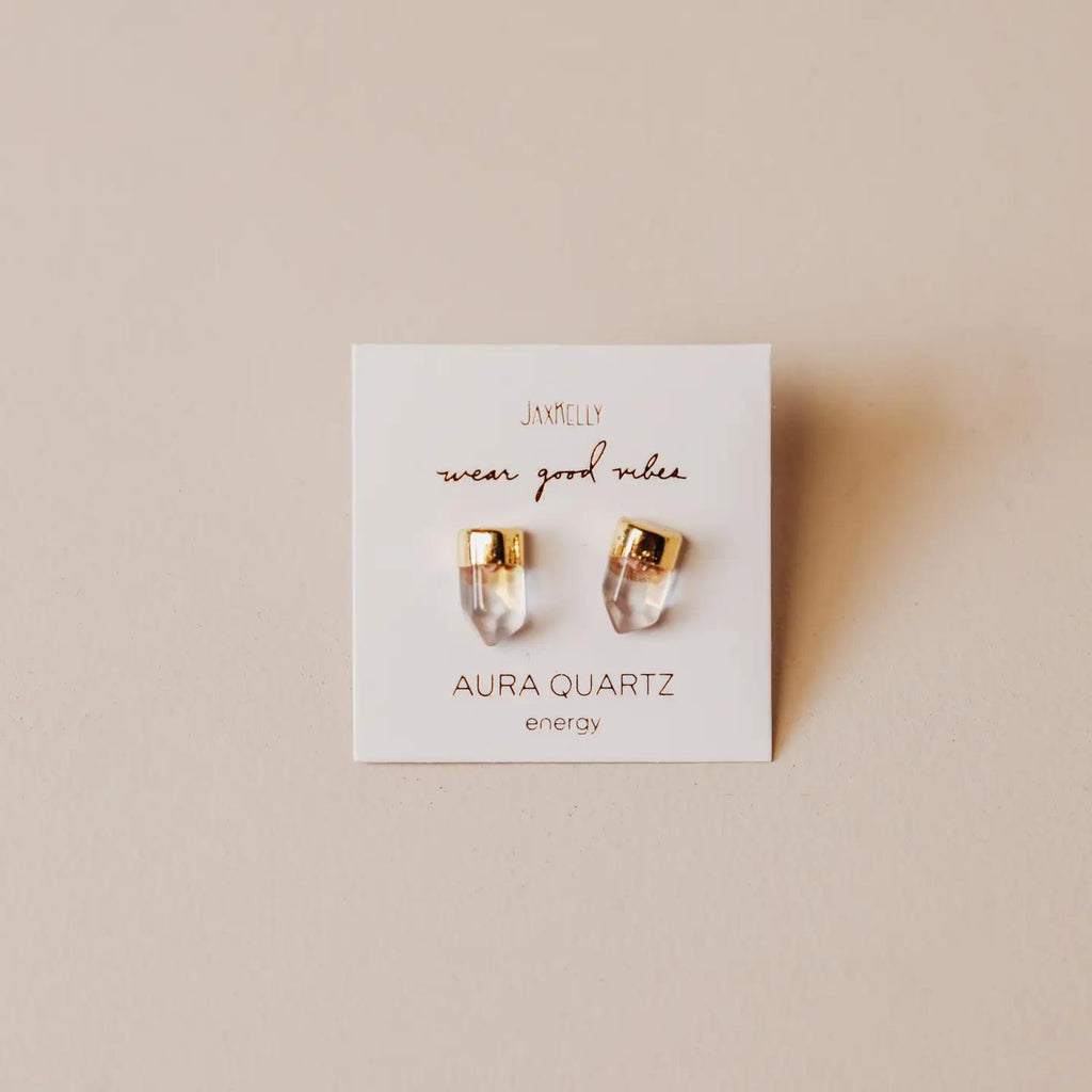 JAXKELLY - Gold Dip Point - Aura Quartz - Gold Earrings