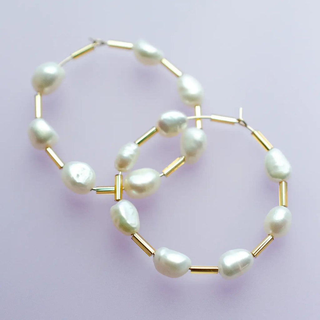 JILLMAKES - Pearl and Gold filled Beaded Hoops