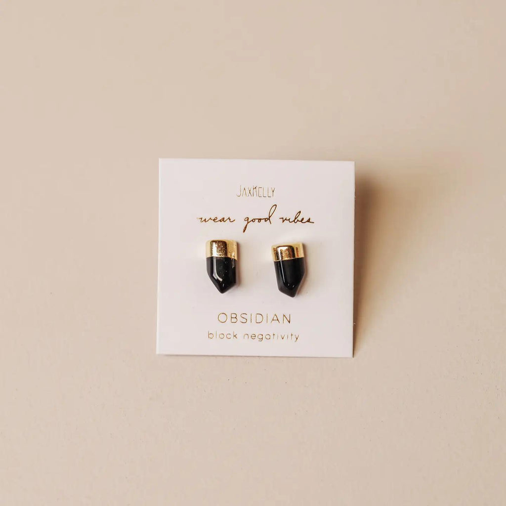 JAXKELLY - Gold Dip Point - Obsidian - Gold Earrings