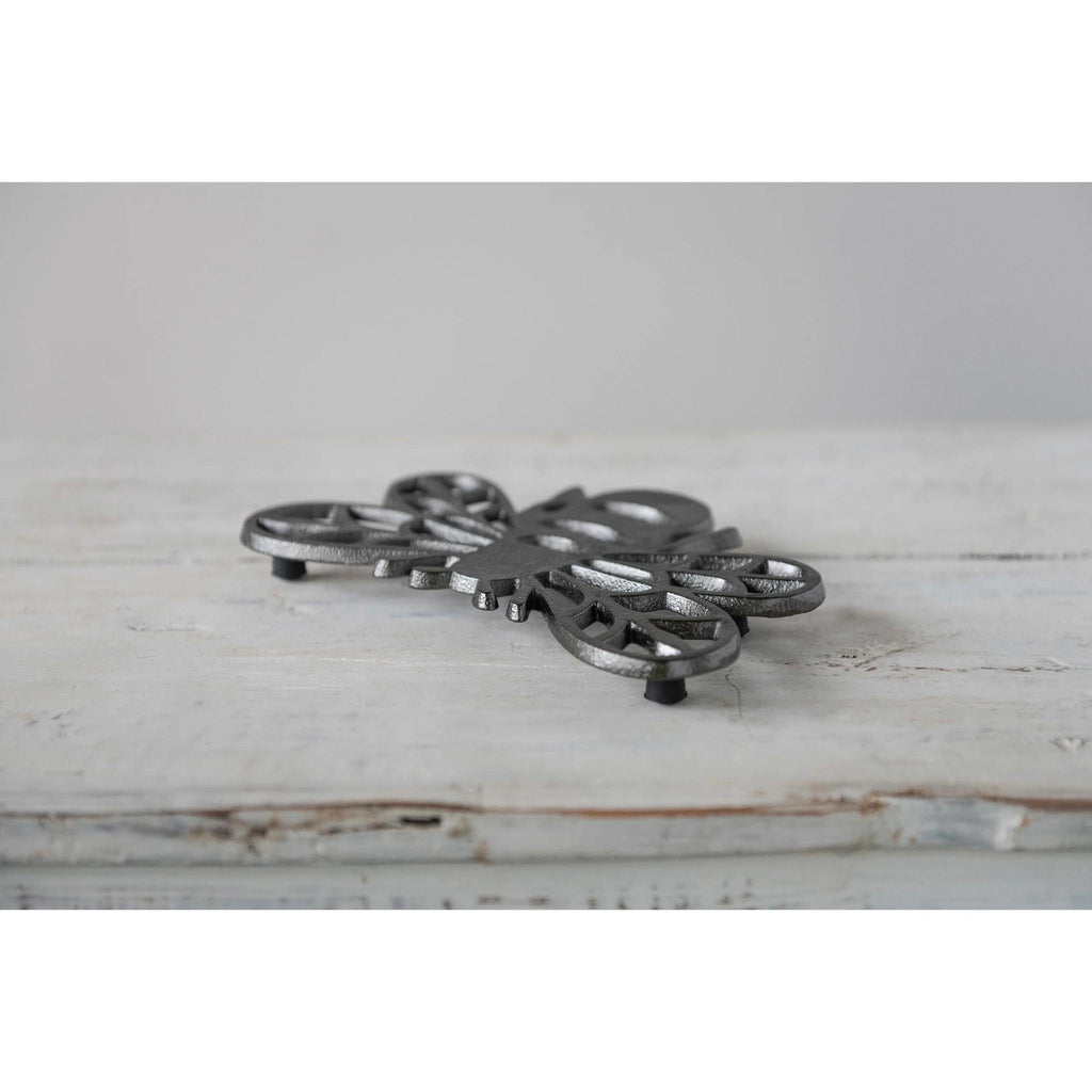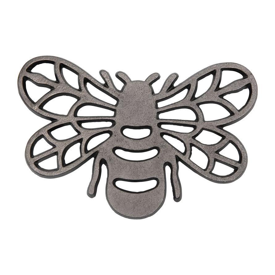 8"L x 5-1/4"W Cast Aluminum Bee Trivet, Black