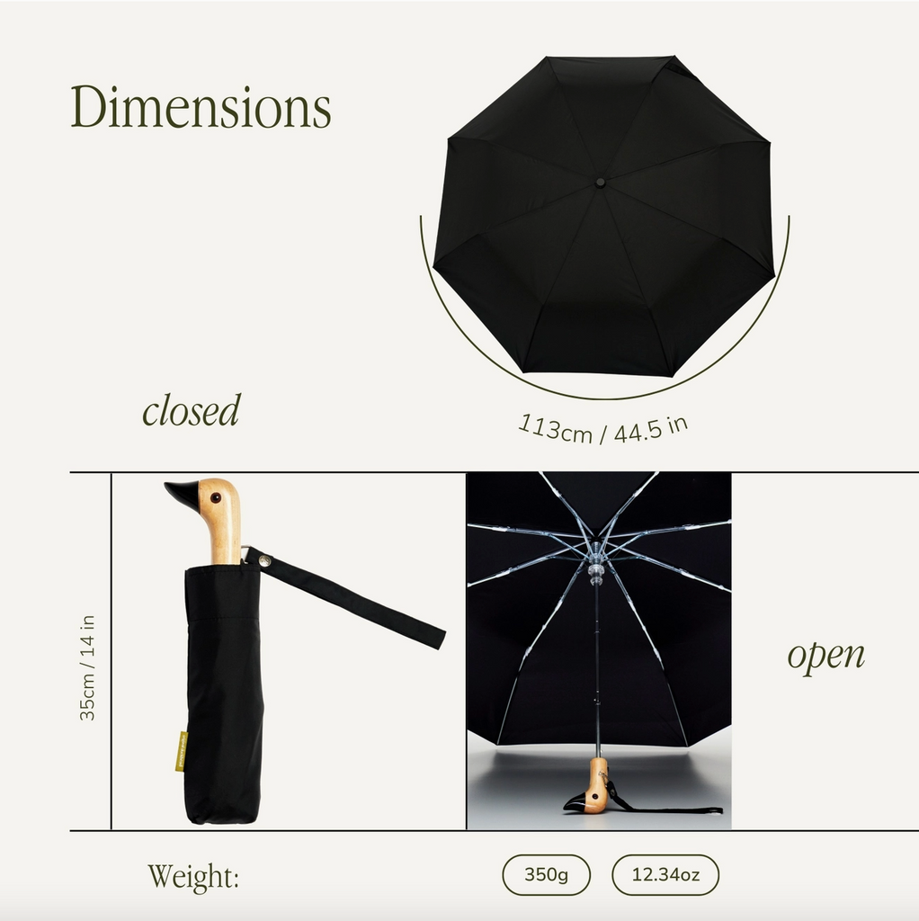 DUCKHEAD - Classic Black Compact Eco Friendly Duckhead Umbrella
