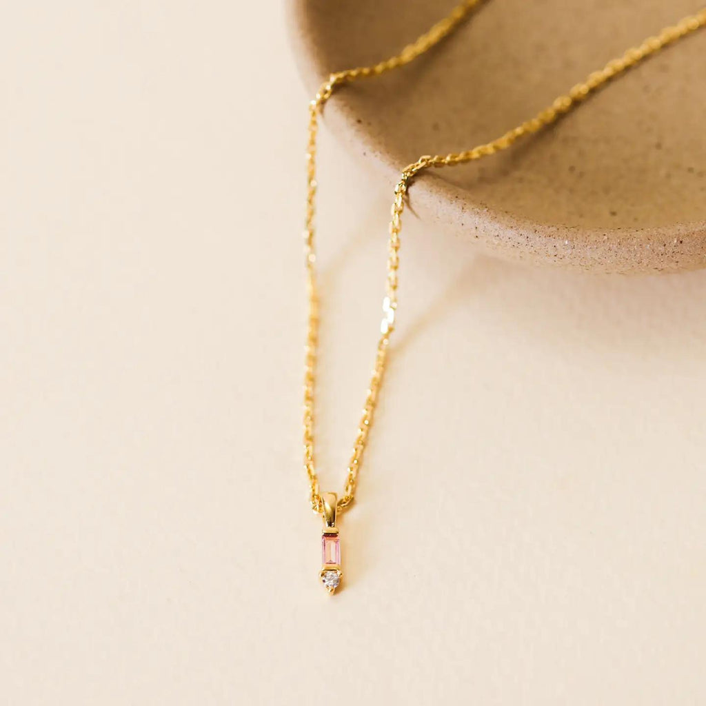 JAXKELLY - Baguette Drop Pendant Necklace - Pink - 18k Gold Plating