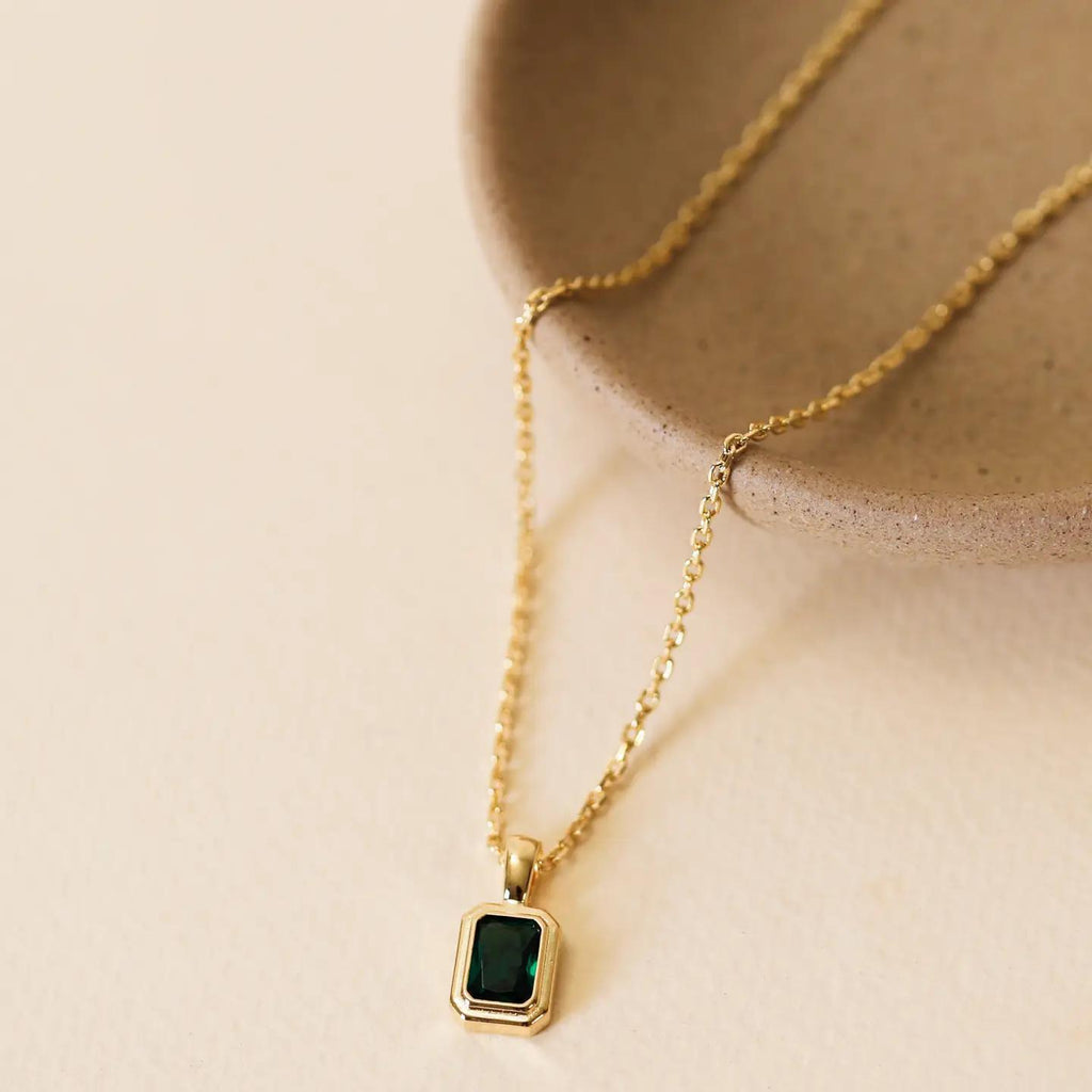 JAXKELLY - Rectangular Gold Baguette Pendant Necklace - Emerald Green