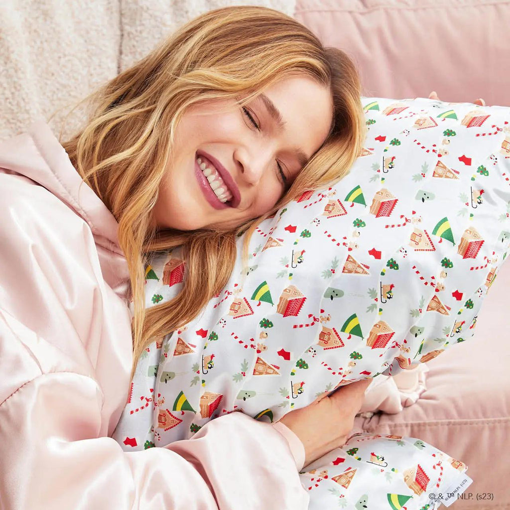-Santa’s coming to town! Get your beauty rest with this satin pillowcase, featuring a festive print inspired by ‘Elf’, the movie